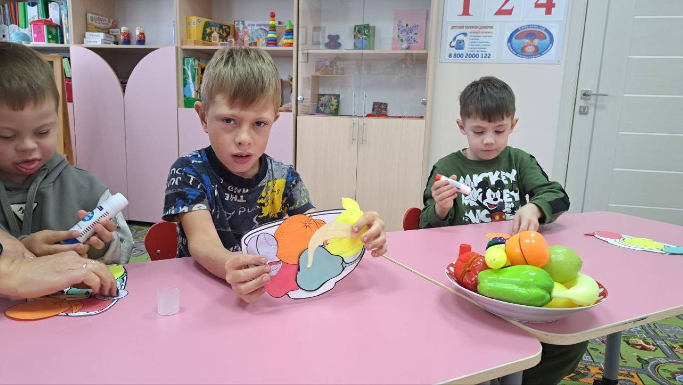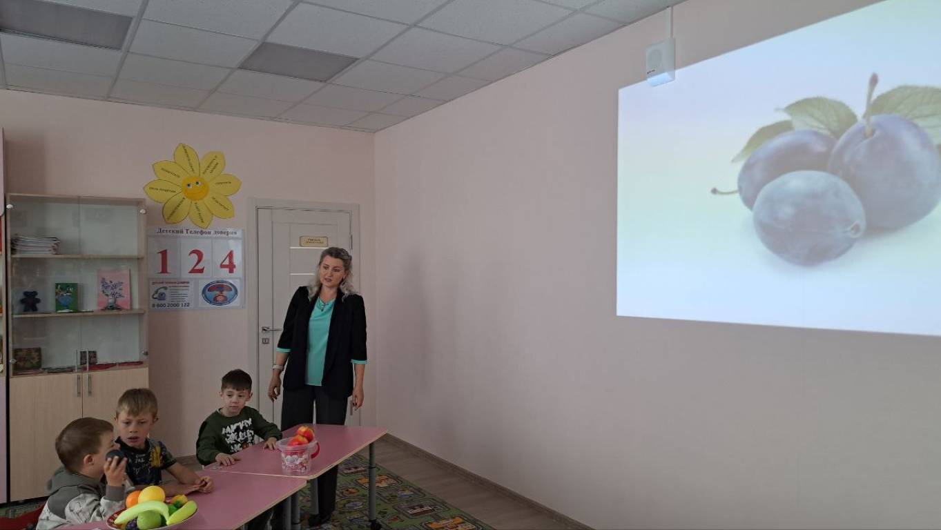 Сегодня в группе кратковременного пребывания на коррекционно-развивающем занятии у педагога-психолога Звягинцевой Н.И. дети учились различать между собой фрукты и правильно их называть, закрепили представления о внешних и вкусовых качествах фруктов, их пользе для человека. Дети узнали, где они растут и что из них готовят. Научились сравнивать, правильно определять их свойства и особенности: форма, цвет, вкус. А также формировали доброжелательные взаимоотношения, навыки сотрудничества, любовь и бережное отношение к природе.