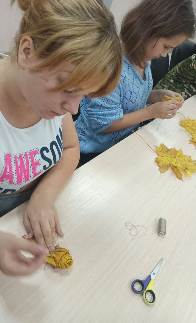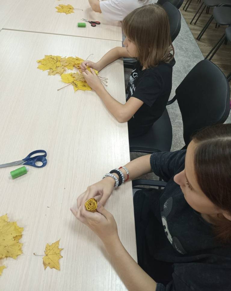 В ОКУ «Центр «СемьЯ» для девочек состоялся по созданию нежных роз из осенних листьев. Под руководством наставников воспитанницы погрузились в увлекательный процесс превращения ярких кленовых листьев в изящные цветы. Юные мастерицы с большим воодушевлением скручивали алые и золотые листочки, формируя бутоны и закрепляя их для прочности. Время занятия пролетело незаметно, наполненное совместной работой, советами и поддержкой. В результате у каждой участницы получилась своя собственная, уникальная осенняя роза – прекрасный символ творчества и наступающего времени года. Этот мастер-класс не только подарил девочкам новые навыки и красивые поделки, но и создал атмосферу тепла и вдохновения, доказав, что самые прекрасные вещи часто рождаются из простых природных материалов.