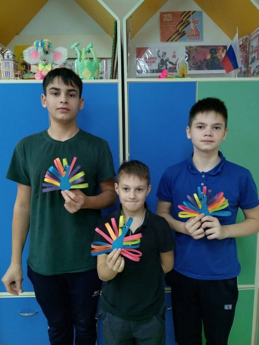 На творческом занятии ребята окунулись в мир ярких красок и научились создавать своими руками великолепного павлина из цветной бумаги. Это был не просто мастер-класс, а настоящее путешествие в тропики, где каждый смог почувствовать себя художником. Кропотливая работа над оперением, где нужно было аккуратно вырезать и склеивать каждое перышко, потребовала от детей усидчивости и внимания. Но результат того стоил! Каких только павлинов мы не увидели: синих, изумрудных, фиолетовых и даже самых невероятных радужных расцветок! В процессе творчества дети не только развивали мелкую моторику и пространственное мышление, но и учились сочетать цвета и текстуры. В итоге у каждого юного мастера получился свой уникальный и очень красивый павлин, которым можно смело украсить комнату или подарить близким.