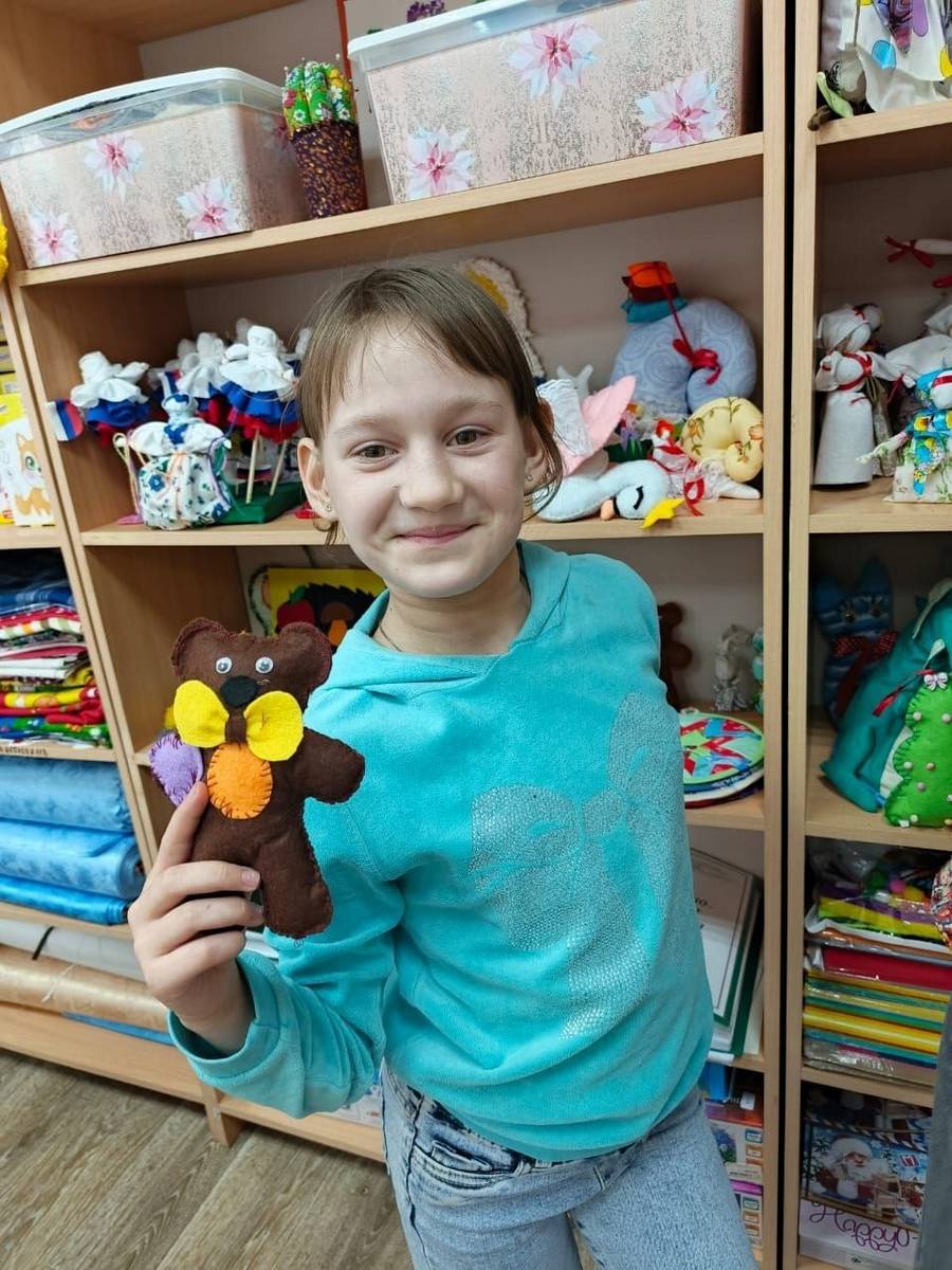 Для изготовления игрушки девочкам были предложены шаблоны разных животных. Определившись с выбором, девочки подобрали необходимый материал, освоили петельный шов и приступили к пошиву игрушки. Девочки кропотливо трудились над своими изделиями и в итоге остались очень довольны результатом.