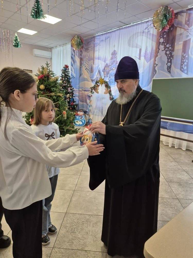 Сегодня эту праздничную радость разделил с нашими воспитанниками Благочинный Поныровского церковного округа, настоятель храма иконы Божией Матери «Знамение» отец Владимир. Батюшка поздравил детей со светлым праздником Рождеством Христовым, благословил их на добрые дела и вручил каждому сладкие подарки.