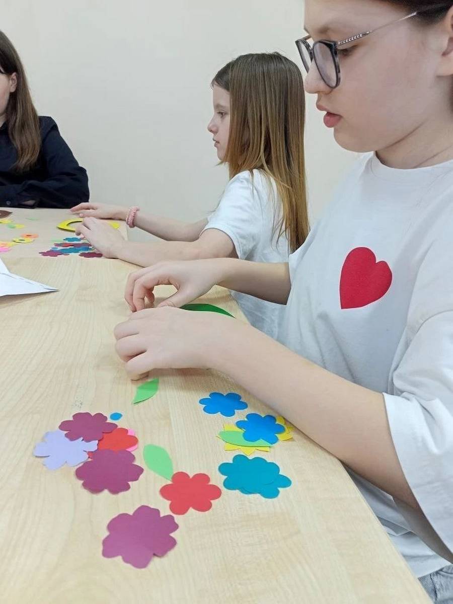 Участницами творческого урока стали девочки. Под руководством воспитателя они осваивали навыки работы с цветной бумагой, ножницами и клеем. Занятие было направлено на развитие мелкой моторики, художественного вкуса, аккуратности и усидчивости.