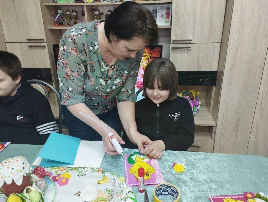 В группе кратковременного пребывания прошло творческое занятие. Ребята своими руками смастерили яркие пасхальные открытки. Главные герои — пушистые цыплята и разноцветные яйца.