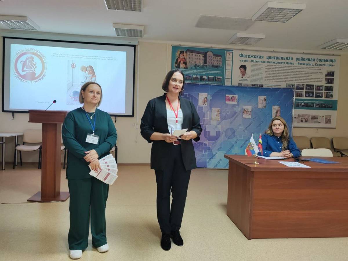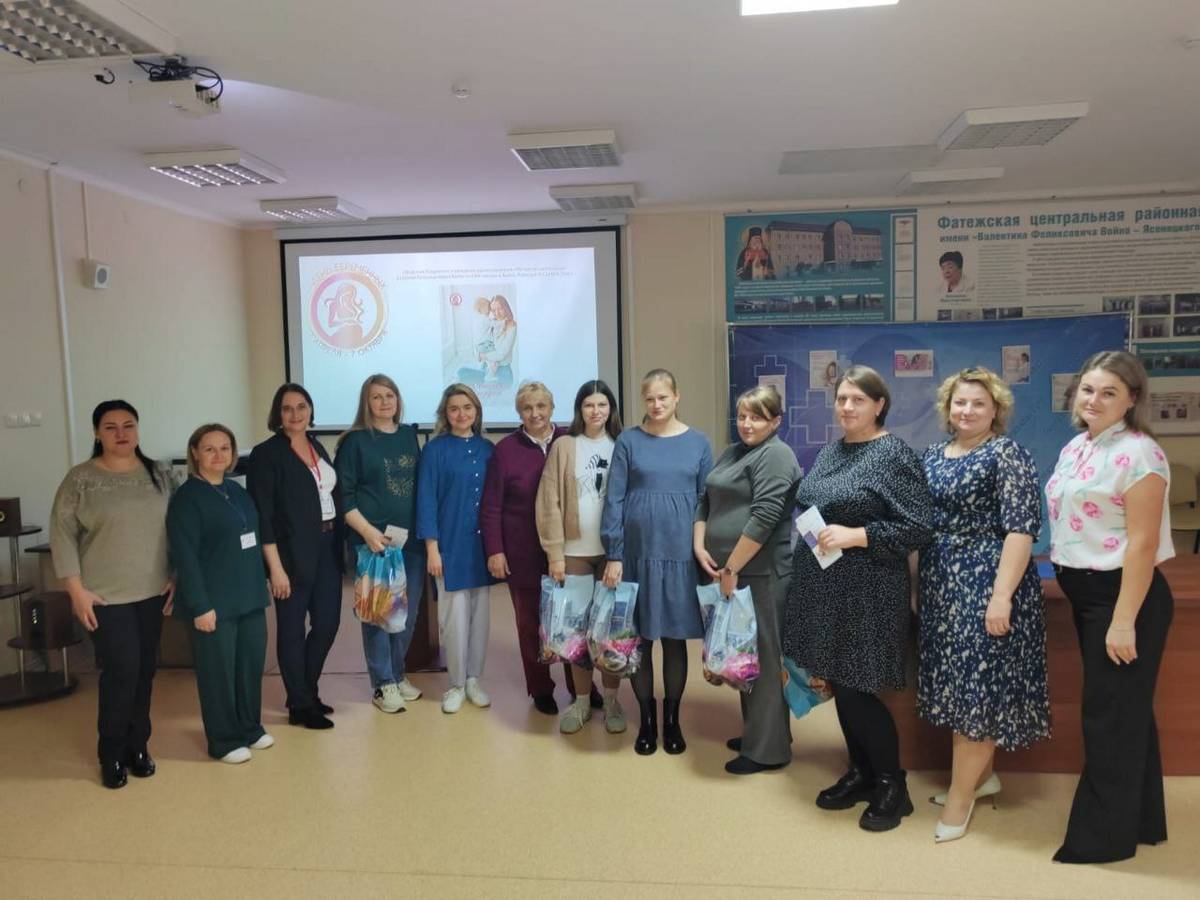 7 октября, в День беременных женщин, сотрудники ОКУ «Центр «СемьЯ» посетили ОБУЗ «Фатежская ЦРБ». Представители Центра провели для будущих мам, пришедших на консультацию, теплую беседу. Они подробно рассказали о действующих мерах государственной поддержки семей с детьми, включая пособия, льготы и программы, которые помогают родителям в этот важный период жизни. После этого специалисты обсудили с женщинами важность позитивного настроя и эмоционального спокойствия во время беременности. Чтобы сделать этот день по-настоящему праздничным, каждая будущая мама получила небольшой полезный подарок. В завершение встречи гости пожелали всем беременным крепкого здоровья, легкой беременности и благополучных родов.