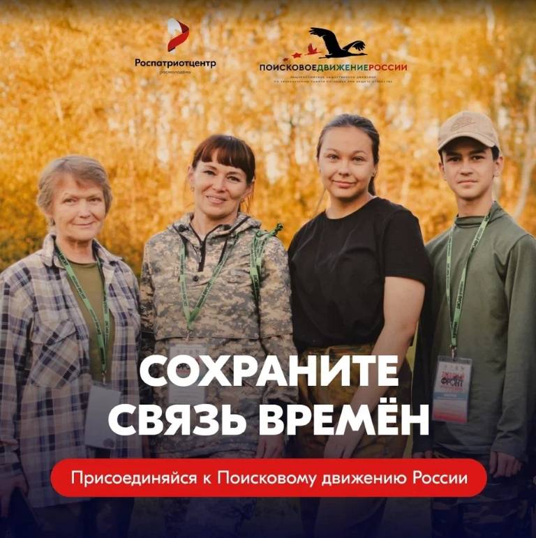 Роспатриотцентр — это возможность для каждого молодого человека проявить себя в деле: стать волонтёром, сохранить память, принять участие в поисковых экспедициях, внести свой вклад в патриотическое воспитание и развитие страны.