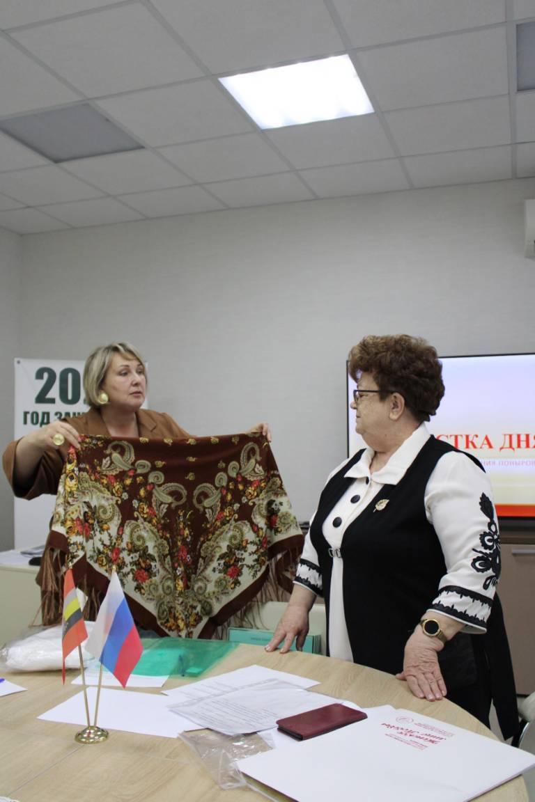 В этот день в Поныровской районной организации Союза Женщин России состоялось отчетно- выборное собрание, на котором присутствовала член правления регионального отделения Союза Женщин России, директор МБОУ «Средняя общеобразовательная школа № 61 им. П.А. Михина» Веселова Елена Ивановна.