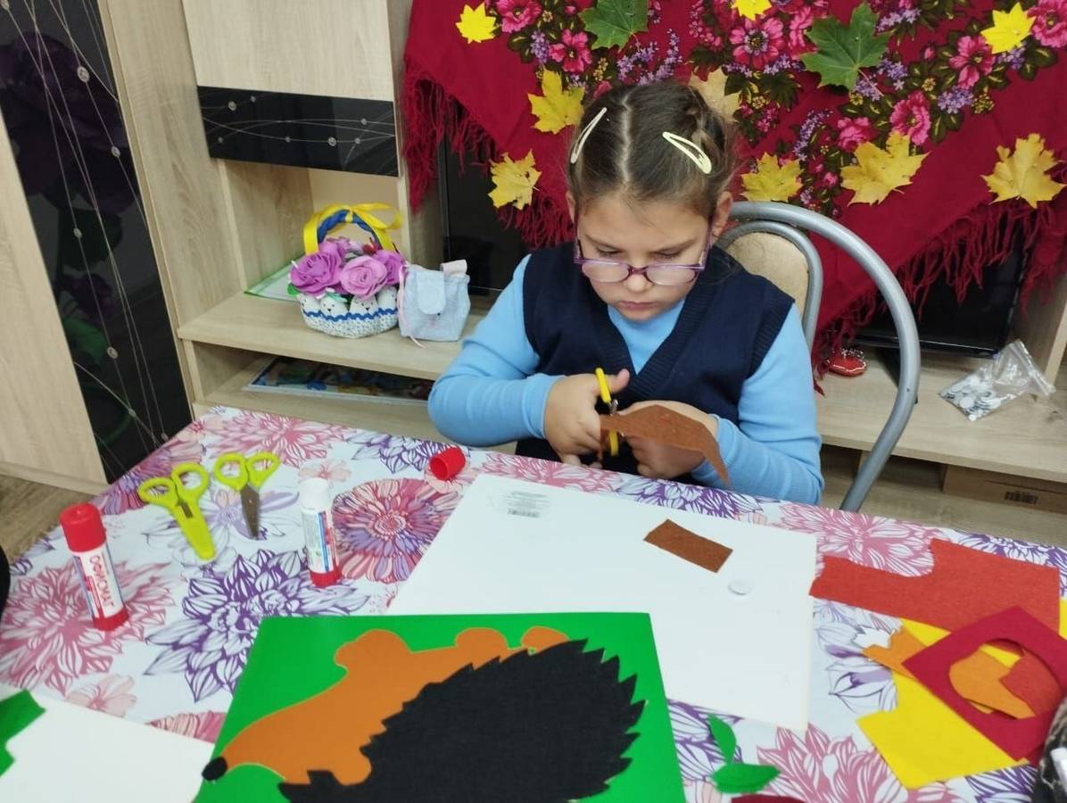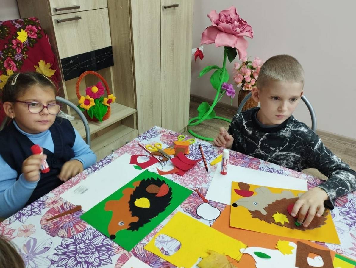 Для изготовления осенних поделок подходит не только природный материал. Отличной альтернативой может стать фетр. Аппликации из фетра получаются очень яркие, а работать с ним просто и удобно. Работая с фетром, ребенок сможет развивать внимательность, усидчивость, моторику рук и проявлять свой творческий потенциал. В группе кратковременного пребывания под руководством инструктора по труду Арцибашевой Е.И. прошёл мастер-класс по изготовлению ежика в технике объемная аппликация. Дети отгадывали тематические загадки, поиграли в игру «Волшебный мешочек». Затем, выслушав технику безопасности, приступили к работе. Аппликации получились яркие и красочные. Закончился мастер-класс веселой физминуткой «Ежата».