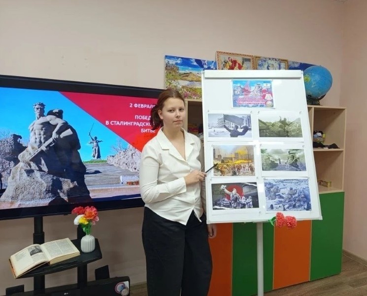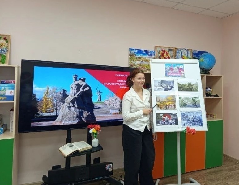 Беседа сопровождалась показом иллюстраций и репродукций: дети увидели изображения Мамаева кургана, знаменитого монумента «Родина-мать зовёт!», разрушенного, но несломленного города. Особое внимание уделили историям о подвигах простых людей, о стойкости защитников.