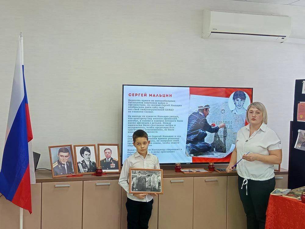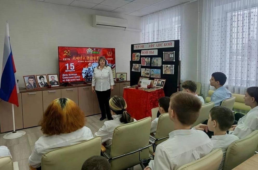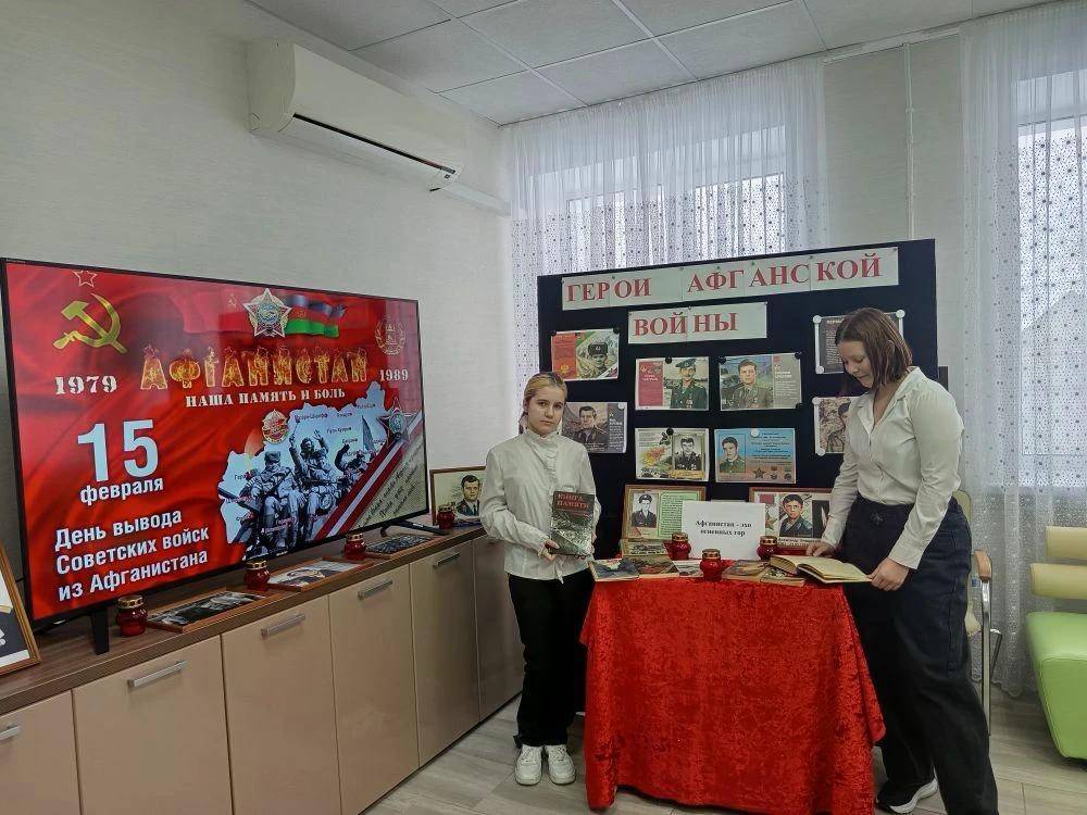 Эта война навсегда останется в сердцах людей, она будет жить в стихах и военных песнях. Завершилось мероприятие обзором литературы у книжной выставки «Афганистан: эхо огненных гор». Из книг памяти воспитанники узнали о воинах-курянах, не вернувшихся с той войны.