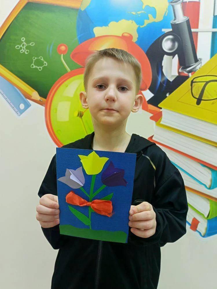 Воспитатель подготовила специальный мастер-класс, в ходе которого ребята создавали красивые открытки из цветной бумаги. Основной темой стала композиция с ярким букетом тюльпанов.