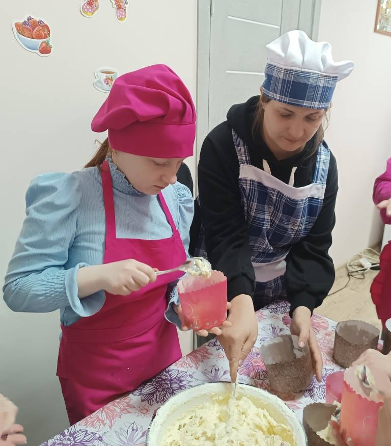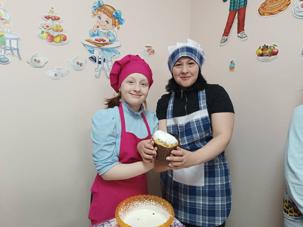 Участники погрузились в особую атмосферу совместного творчества и труда: замесили тесто по рецепту, поставили куличи в духовку и приступили к декупажу яиц.